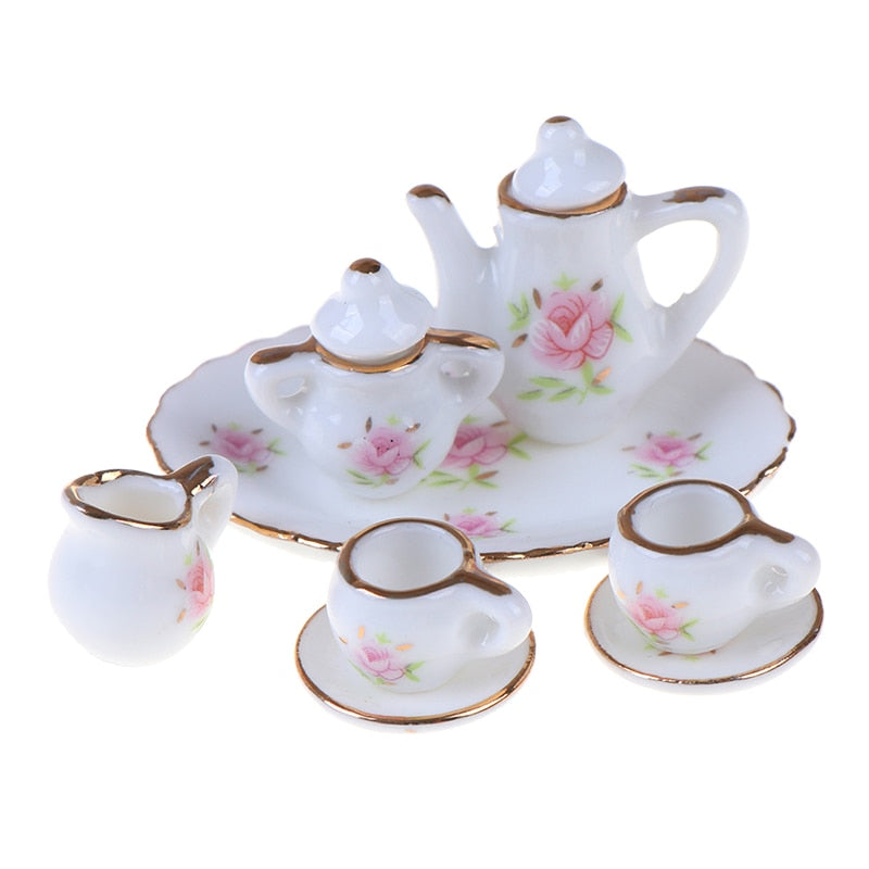 1/12 Dollhouse Miniature Dining Ware Porcelain Tea Set Dish Cups 8Pcs/set